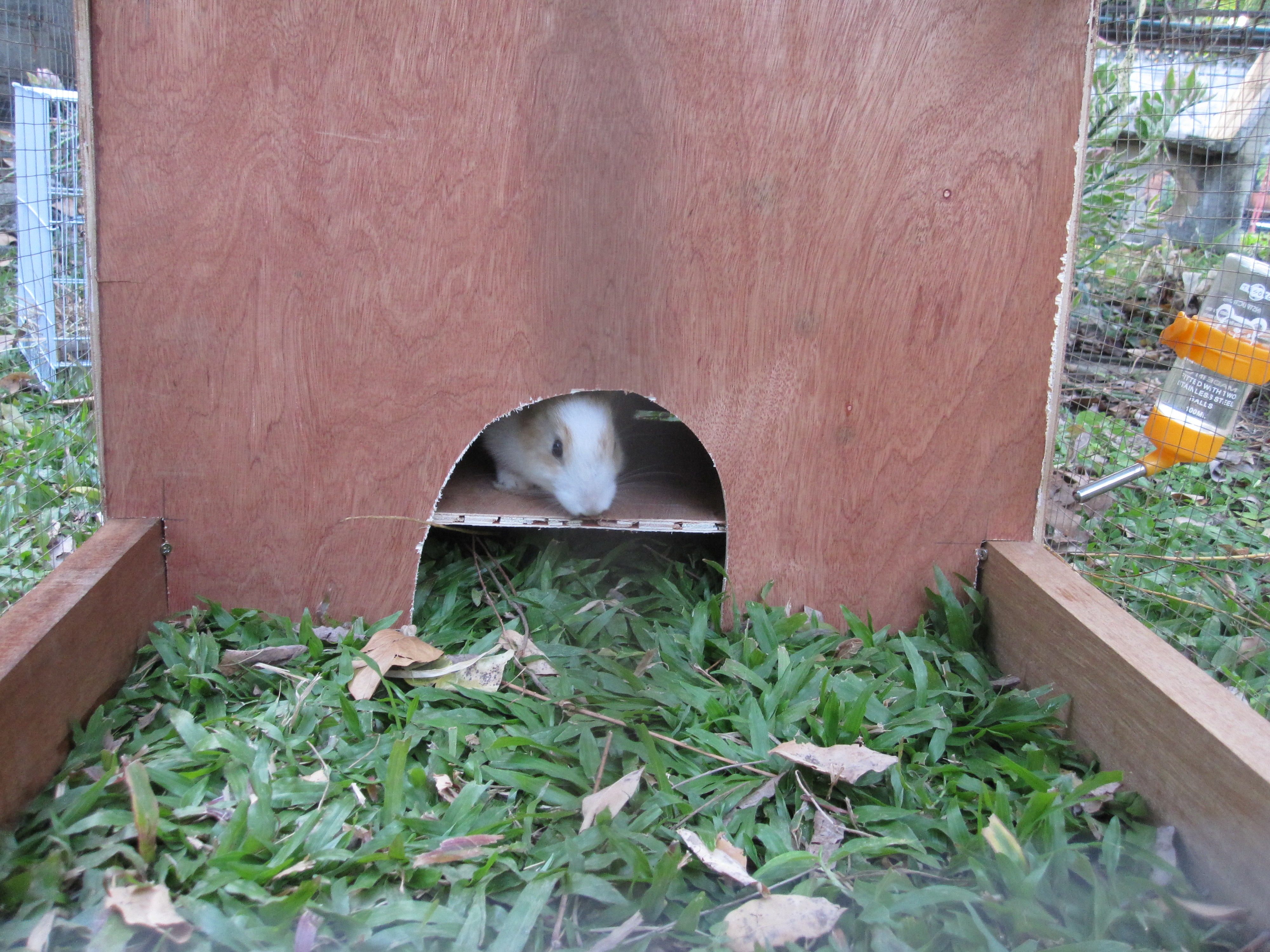 Due to the solid-wood construction and massive over-engineering the hutch is immovable by children and a struggle for an adult, hence the handles you may have noticed in fig. 1. This is semi-intentional as it presents a challenge to passing cats, dogs and pythons. Depending on future tests by both occupant and visitors, we may install tent pegs at a later date.